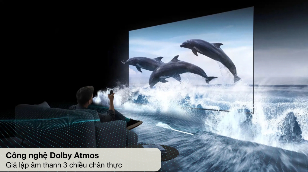 Về âm thanh, tivi được trang bị hệ thống loa tích hợp công suất tổng khoảng 20W (2 x 10W) hoặc cao hơn tùy phiên bản, hỗ trợ các chuẩn âm thanh như Dolby Audio, có thể kèm theo Dolby Atmos giả lập. Hệ thống xử lý âm thanh số giúp mở rộng trường âm, tạo hiệu ứng vòm ảo, tăng cường độ rõ của giọng thoại trong phim và chương trình truyền hình. Người dùng có thể tùy chỉnh các chế độ âm thanh như Standard, Movie, Music, Sports, Game để phù hợp với nội dung. Khi kết hợp với soundbar hoặc dàn âm thanh rời qua HDMI eARC, tivi có khả năng truyền tải tín hiệu âm thanh chất lượng cao, hỗ trợ trải nghiệm xem phim tại gia gần với rạp chiếu.